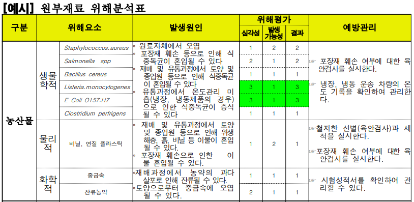 'Food Safety Hazard, 식품안전위해 > 2. HACCP, 해썹' 카테고리의 다른 글